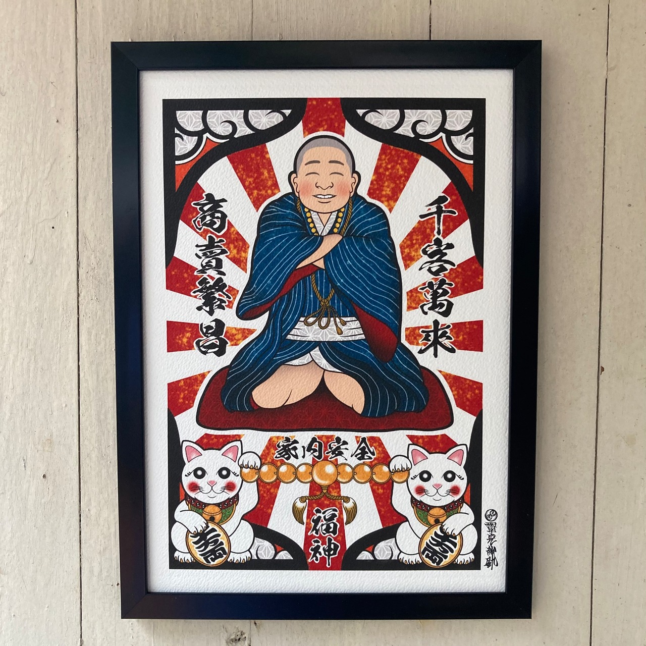 尾九 吉祥画 福神 仙臺四郎圖 A4サイズ フレーム付き