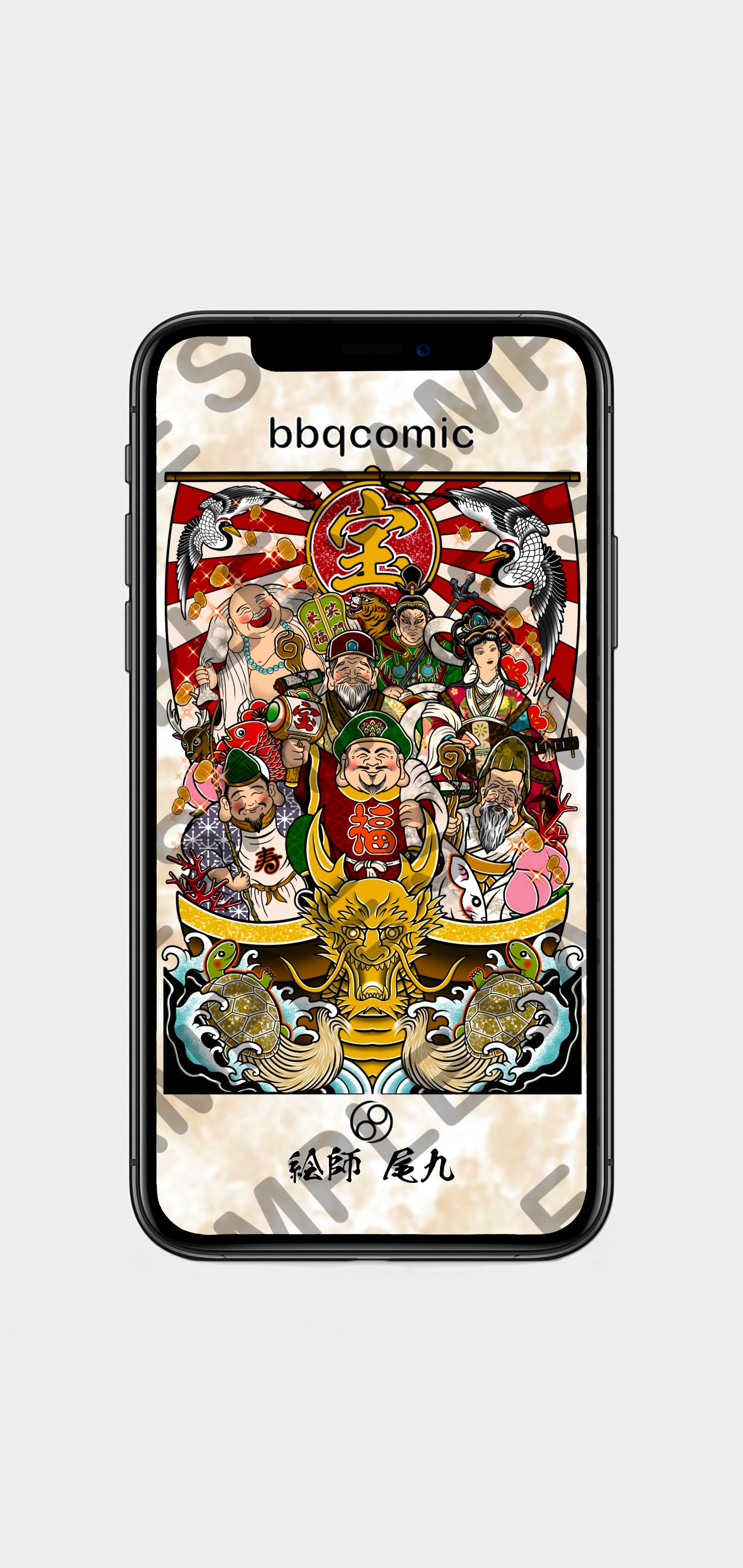 【Digital Wallpaper】宝船|Takarabune Smartphone & Tablet Wallpaper – for Good Fortune & Happiness (2048×4320px, JPG) | bbqcomic