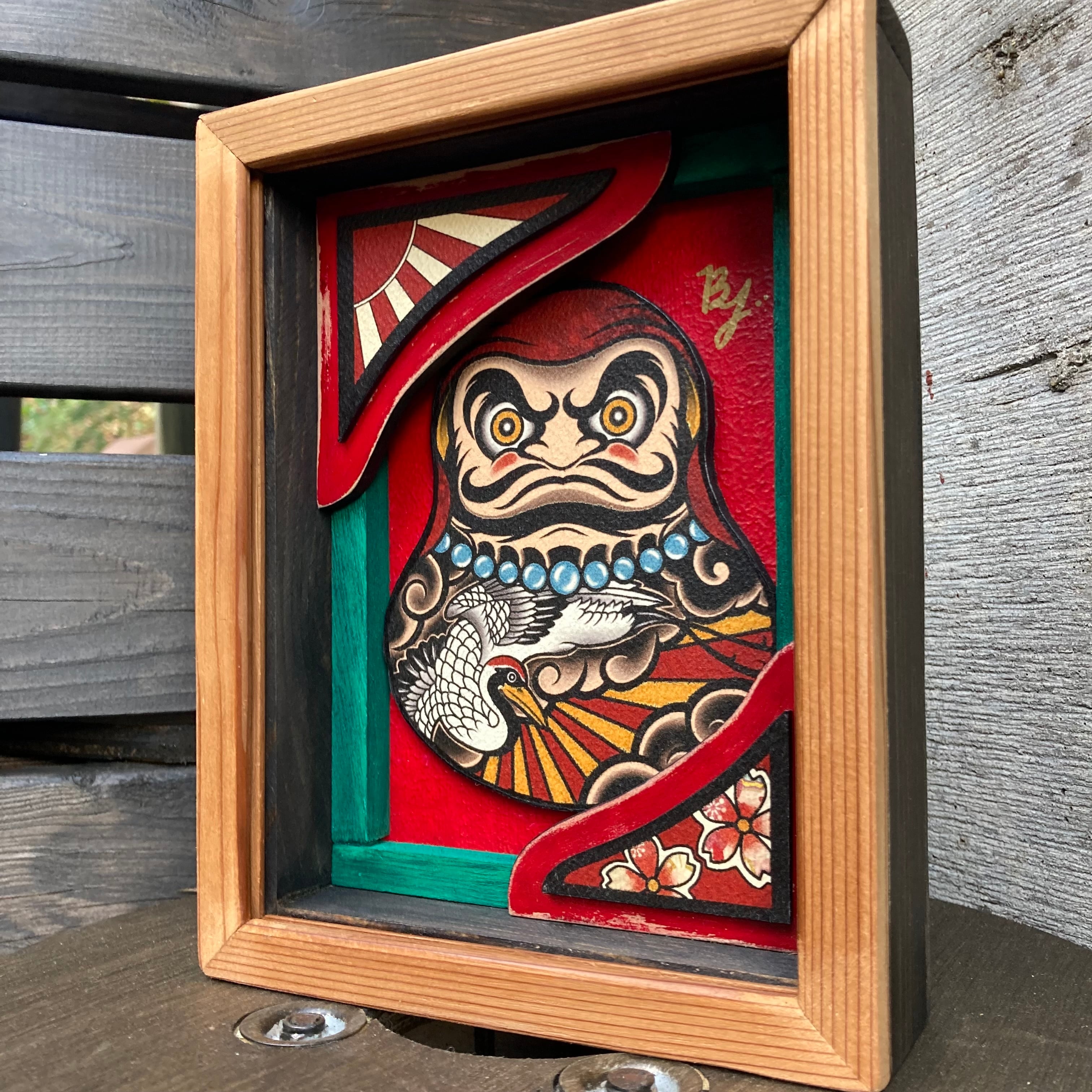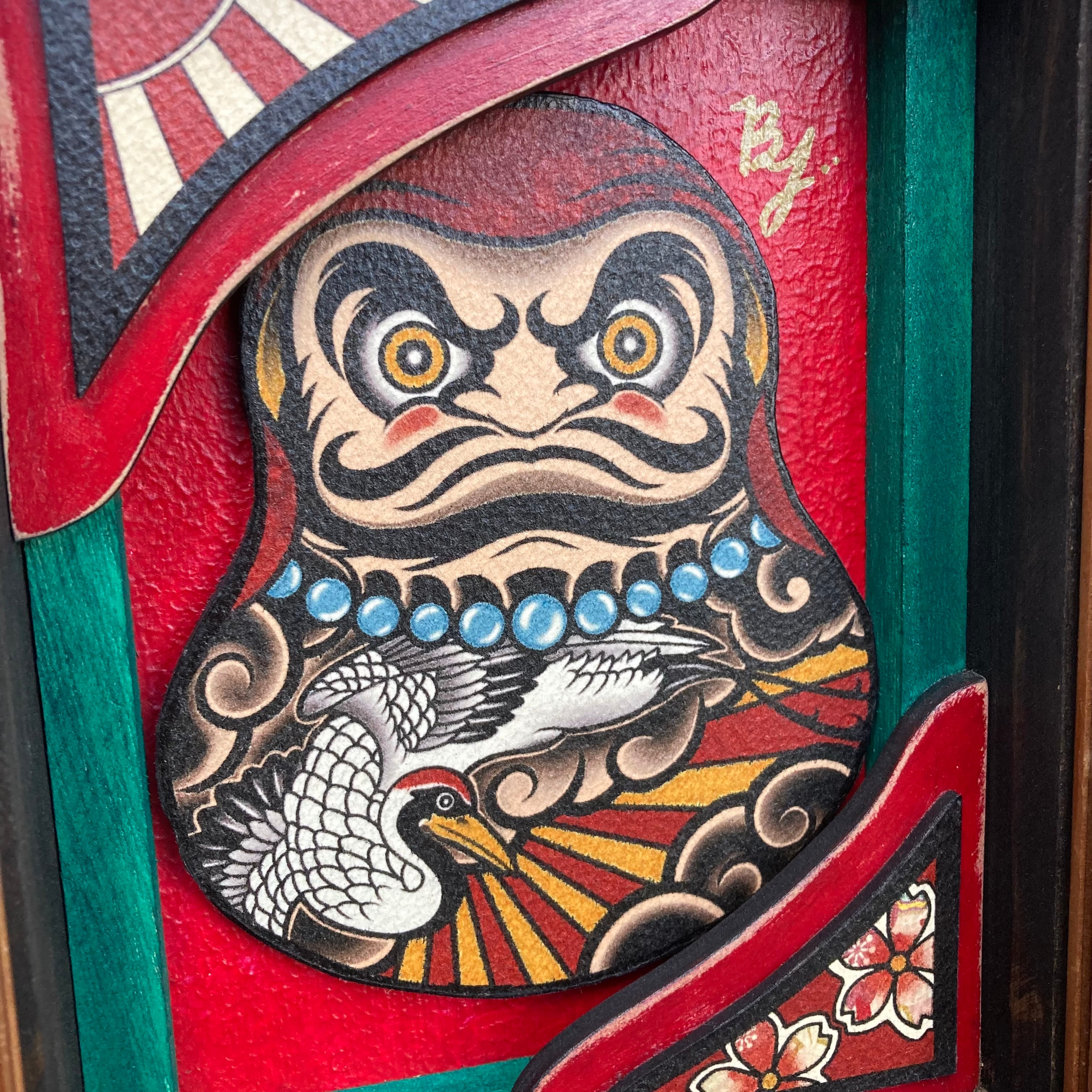 刺青だるま 鶴 (置き型、壁掛け可能)