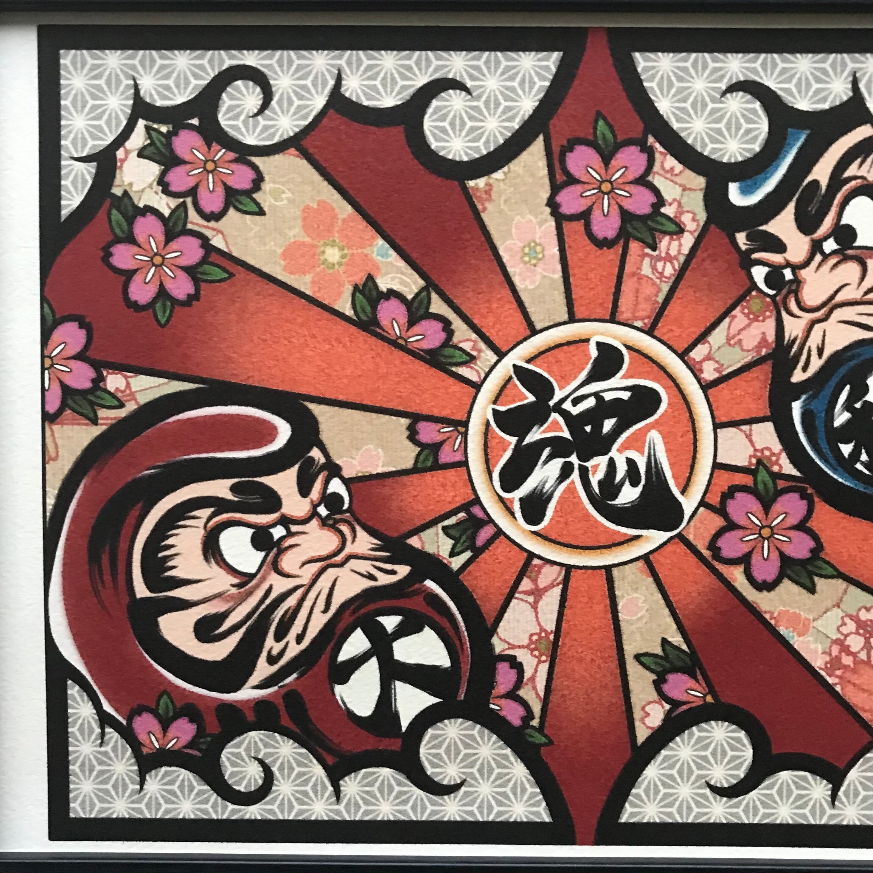 尾九 縁起物イラスト 筆 ダルマ 大和魂 A4サイズ フレーム付き