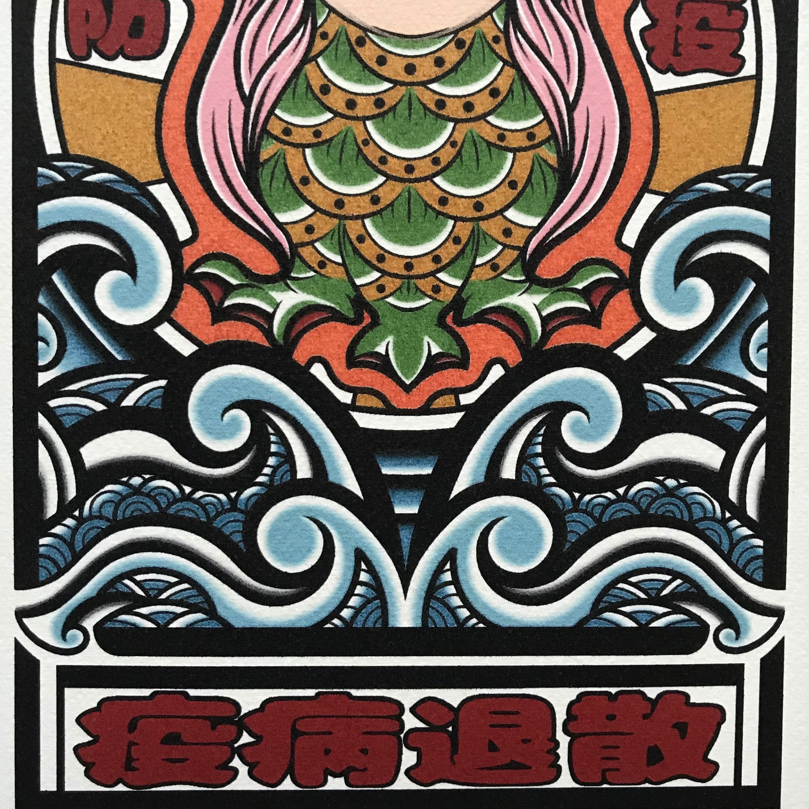 尾九 画 防疫 疫病退散 アマビエ イラスト A4サイズ フレーム付き