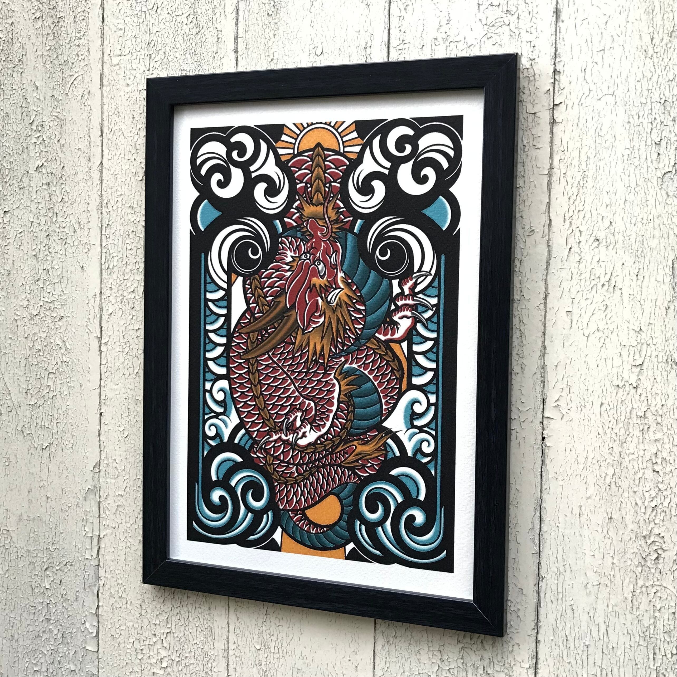 尾九 龍画 昇り龍 赤龍 A4サイズ フレーム付き