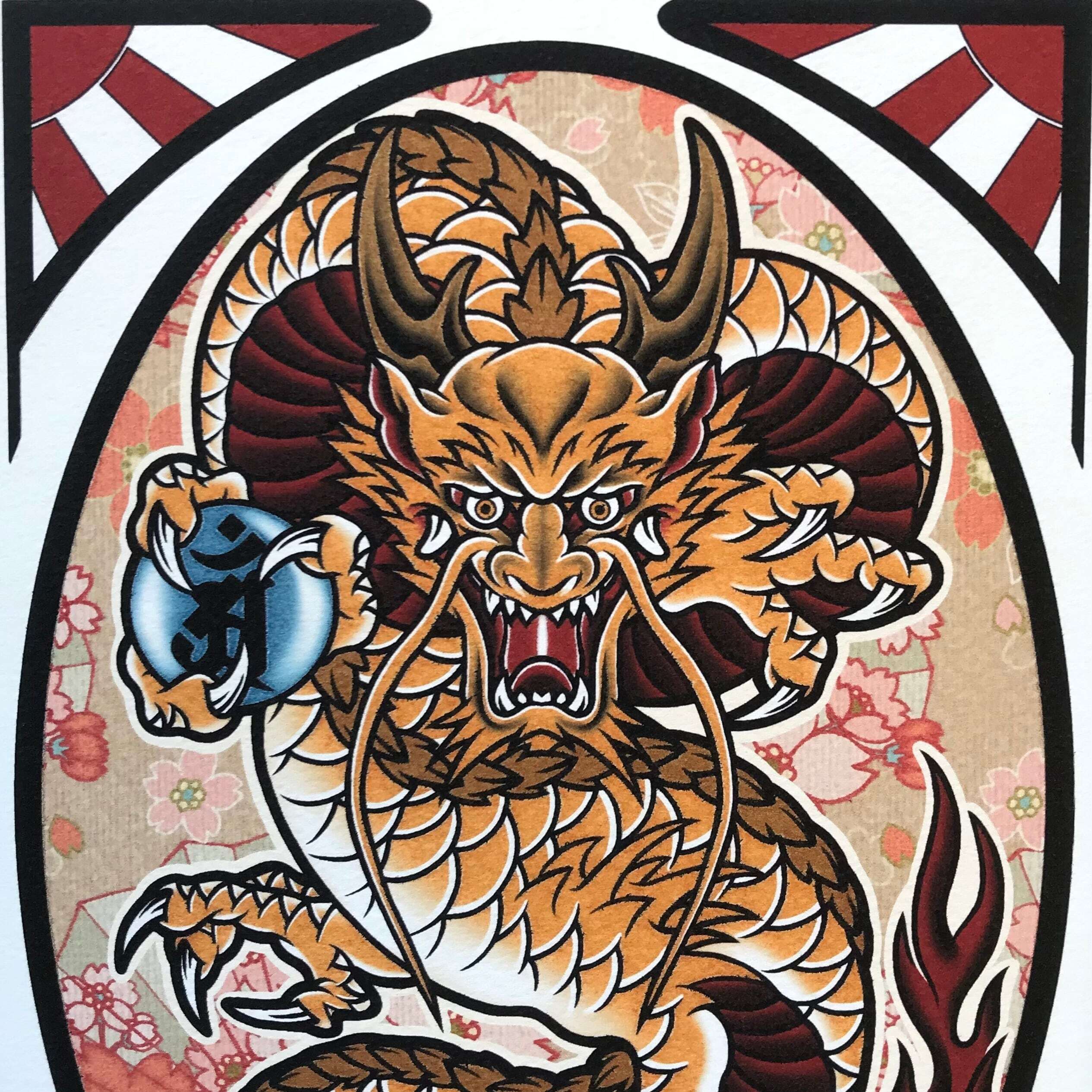 尾九 龍画 正面龍 黄龍 A4サイズ フレーム付き