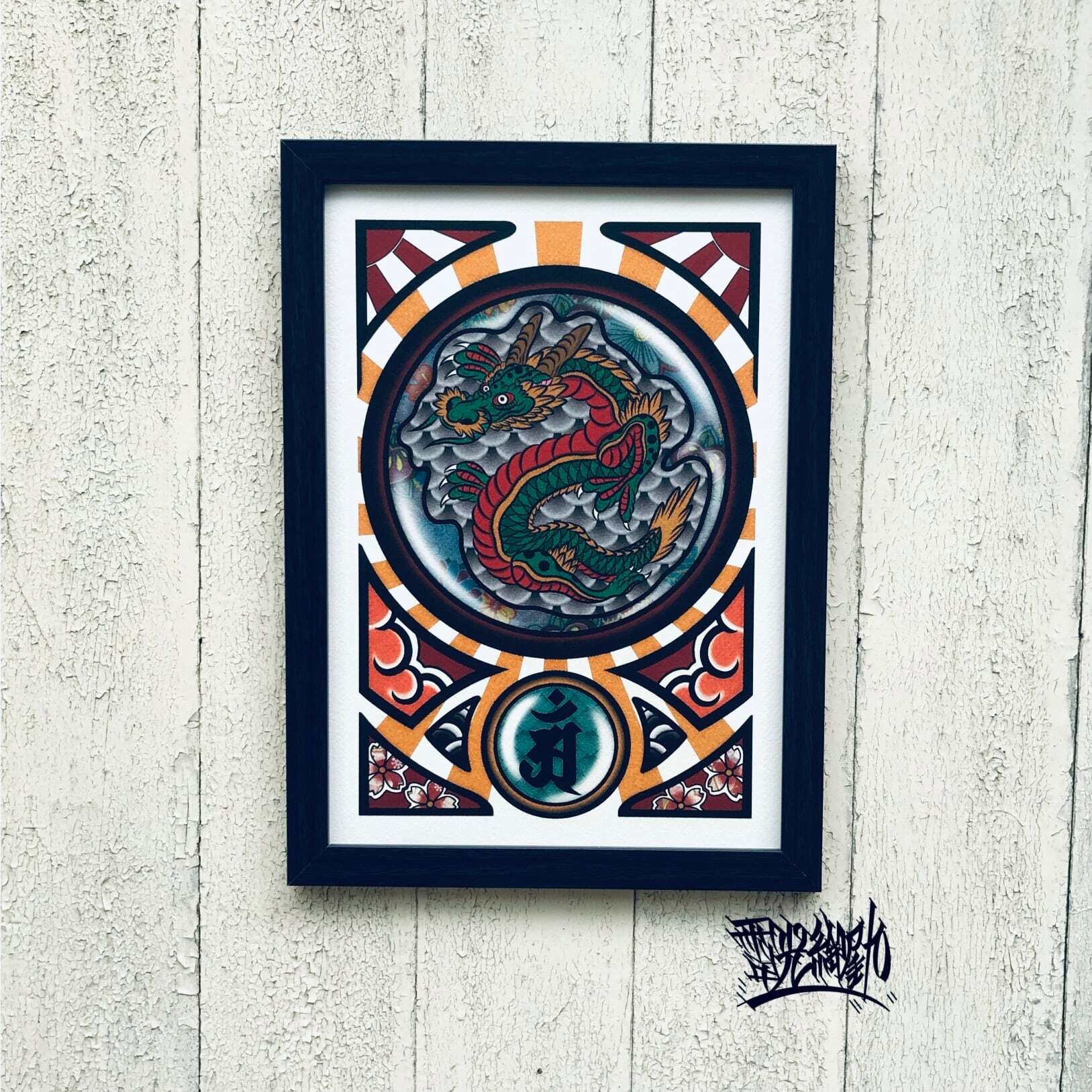 尾九 龍画 辰年 巳年 梵字 アン A4サイズ フレーム付き