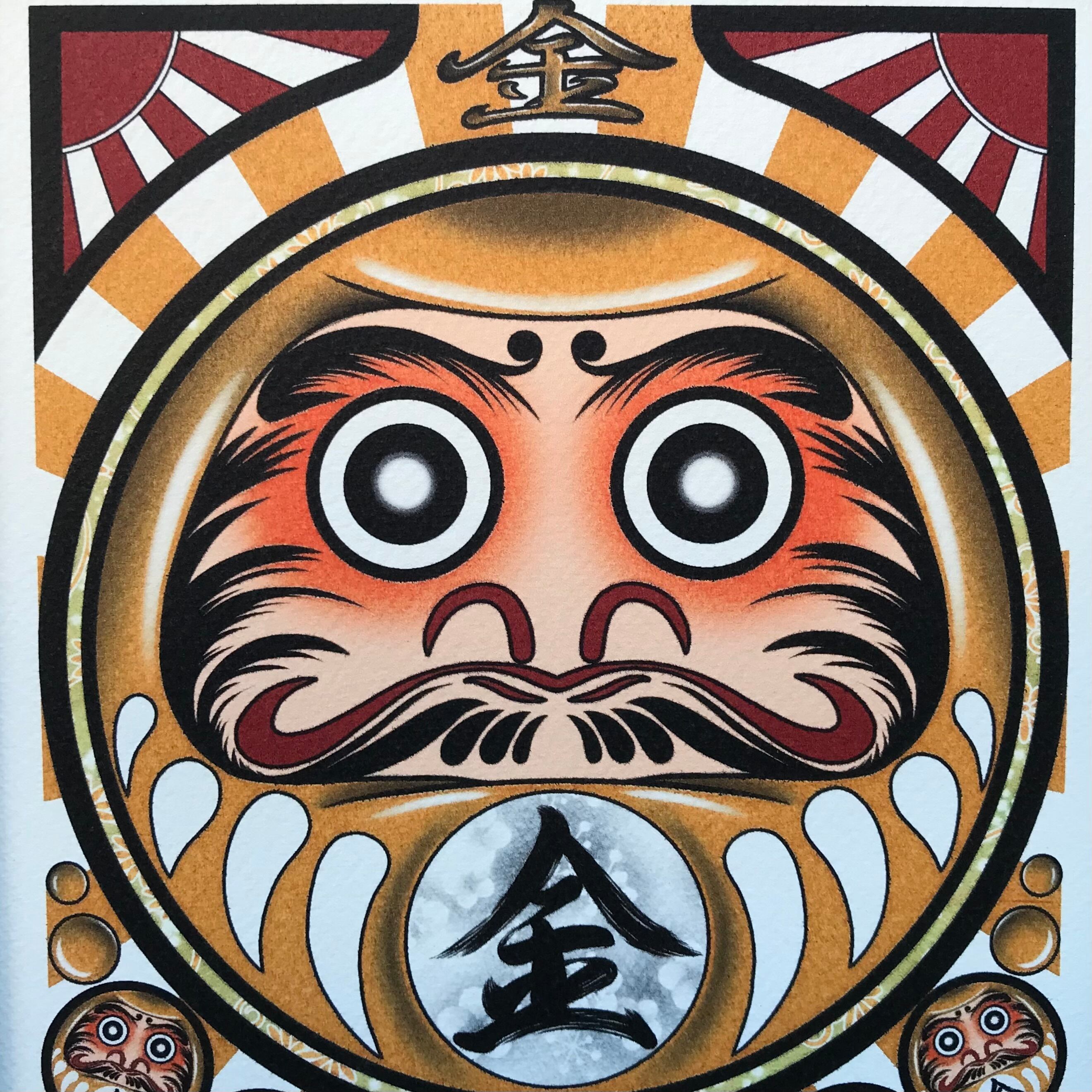 尾九 開運イラスト 金文字達磨 七転び八起き A4サイズ フレーム付き