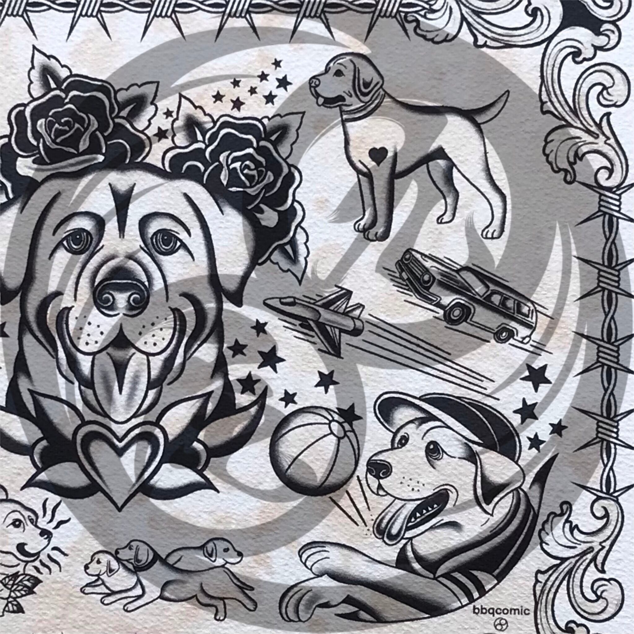 尾九 タトゥーアート アメトラ ラブラドール A4サイズ フレーム付き