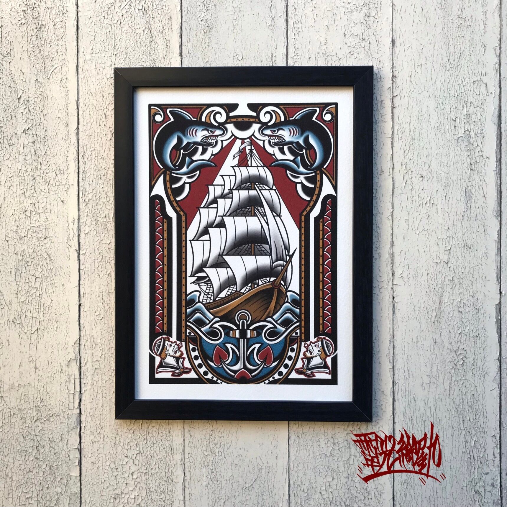 尾九 タトゥーアート Lucky ship A4サイズ フレーム付き