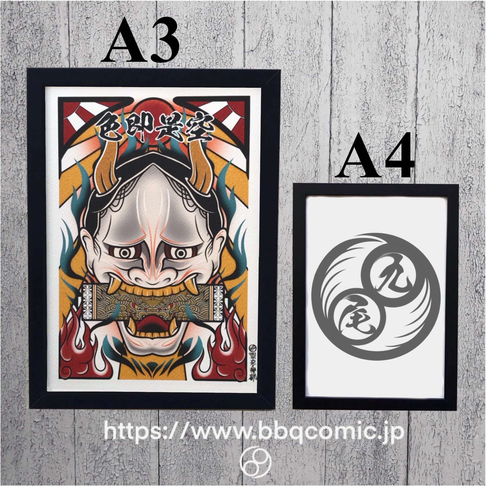 尾九 画 魔除け 般若面 色即是空 A3サイズ フレーム付き