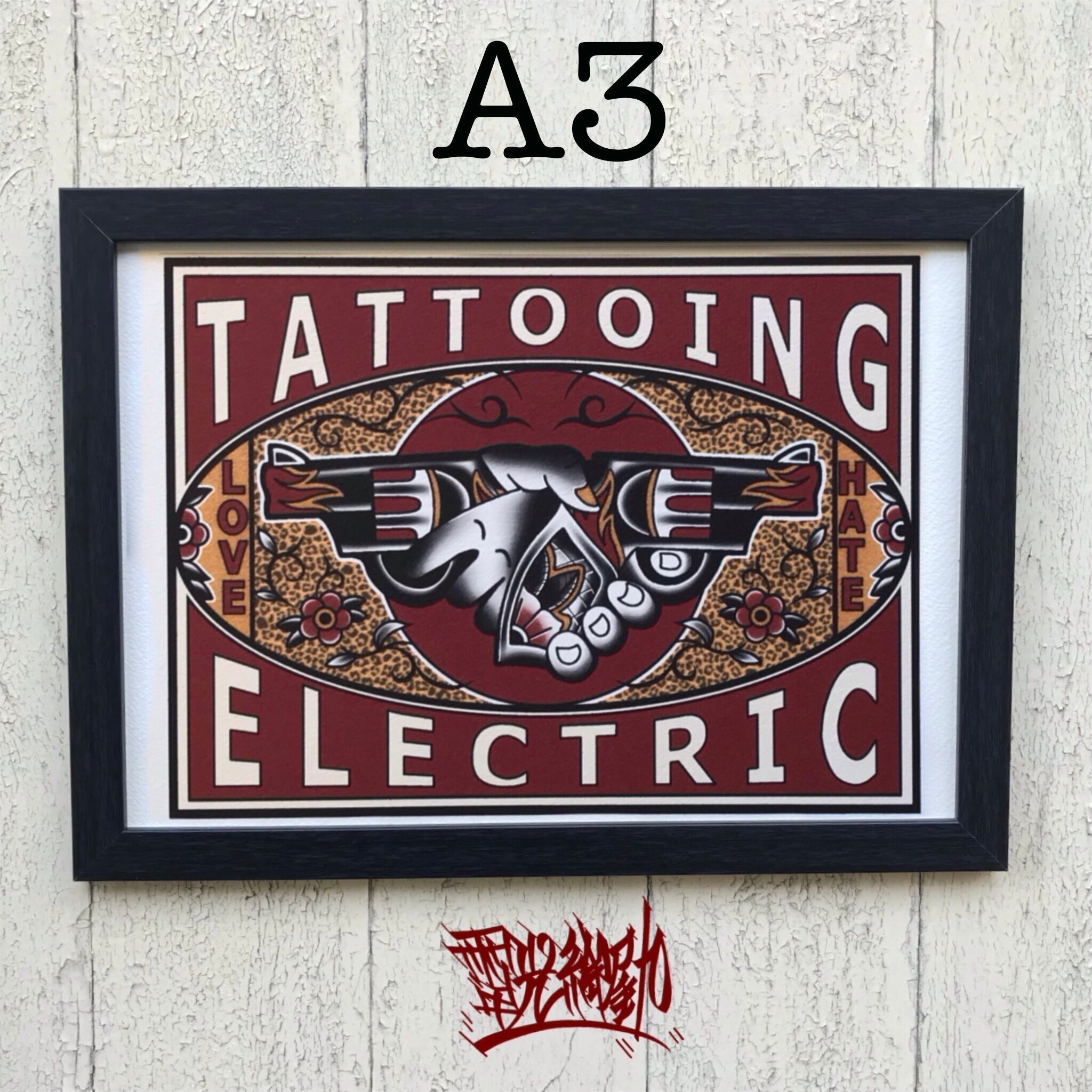 尾九 タトゥーアート 拳銃 ラブ&ヘイト A3サイズ フレーム付き