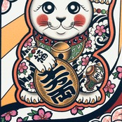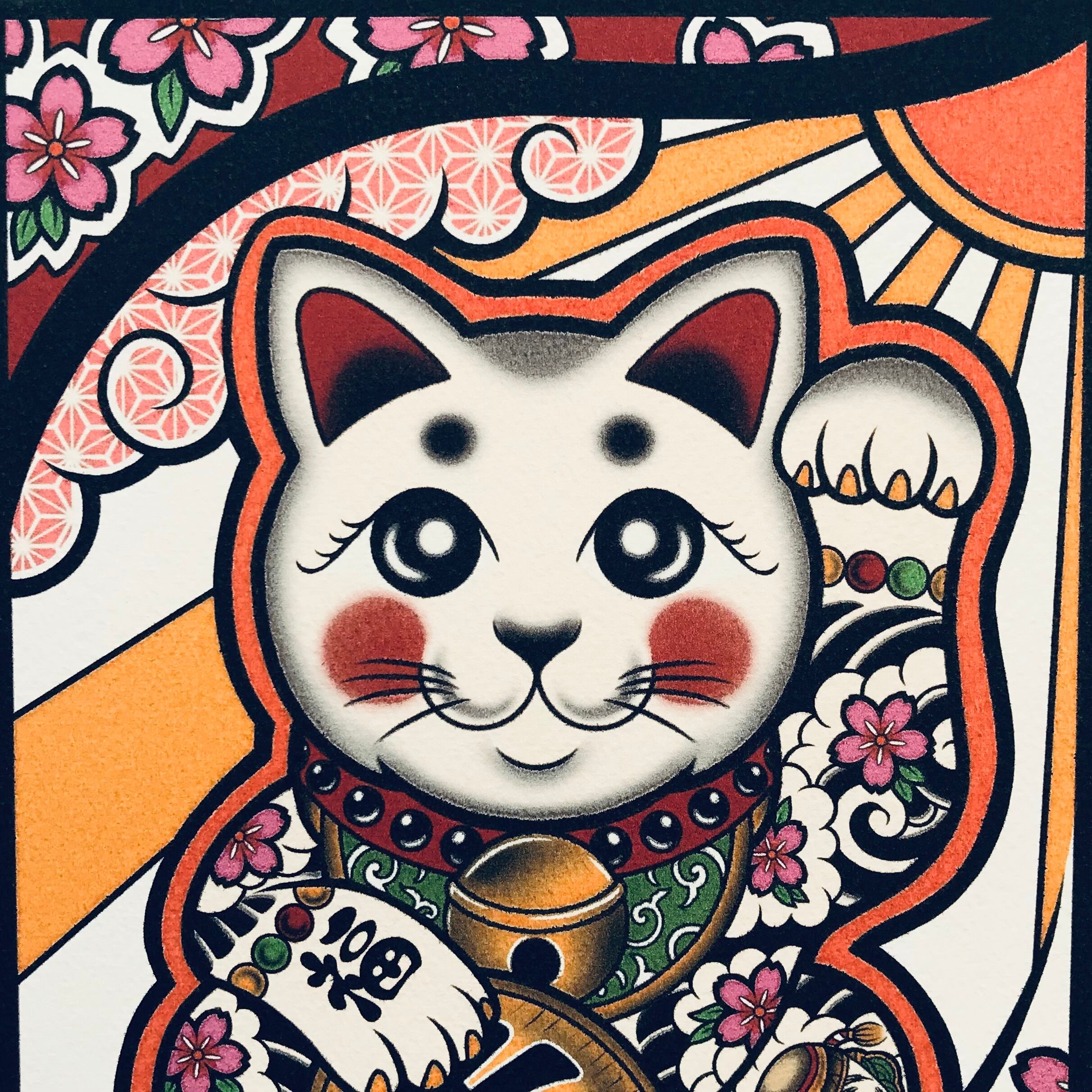 尾九 刺青画 招き猫 桜吹雪 打出の小槌 A3サイズ フレーム付き